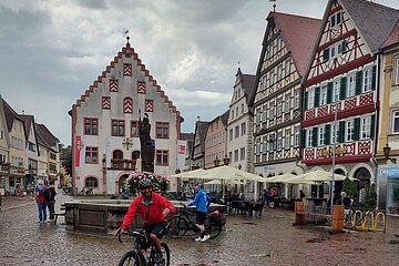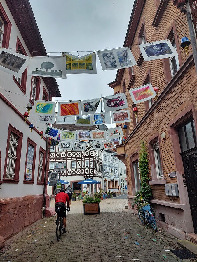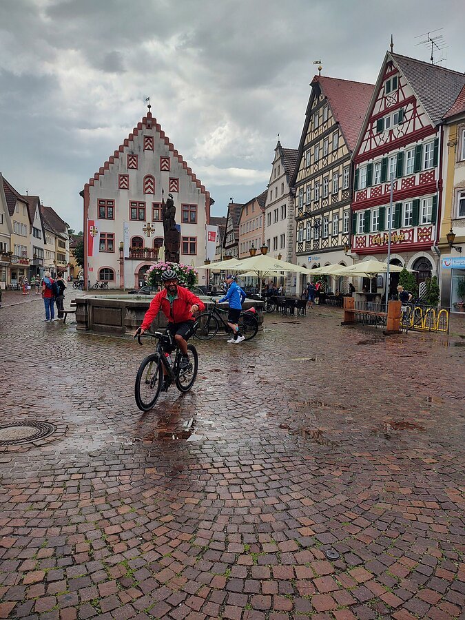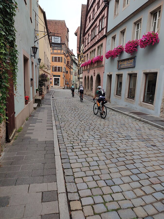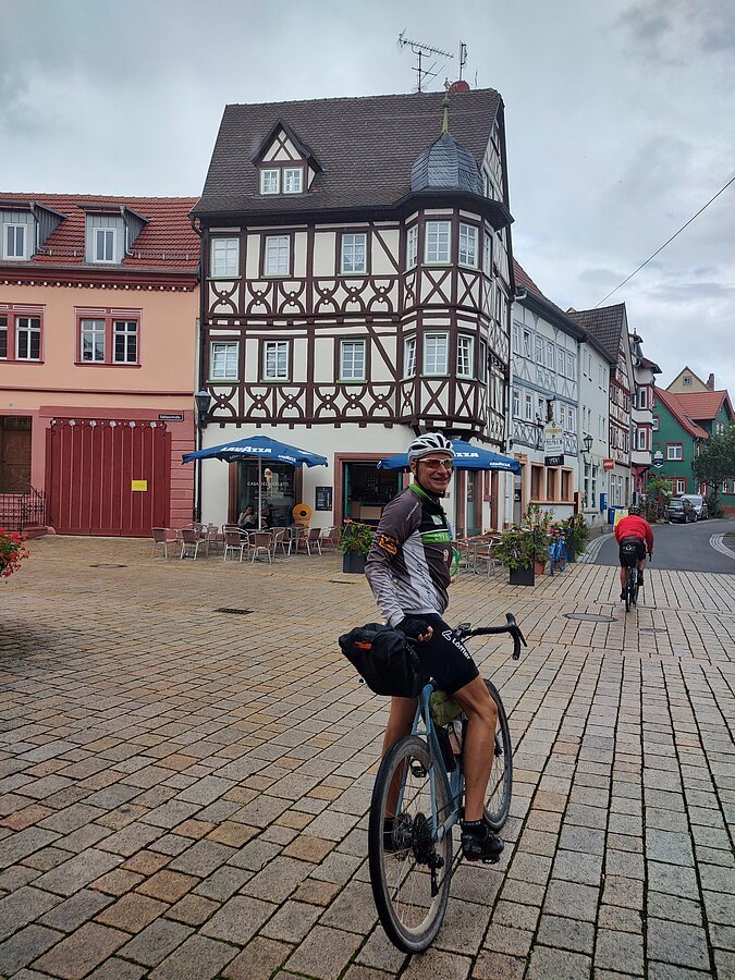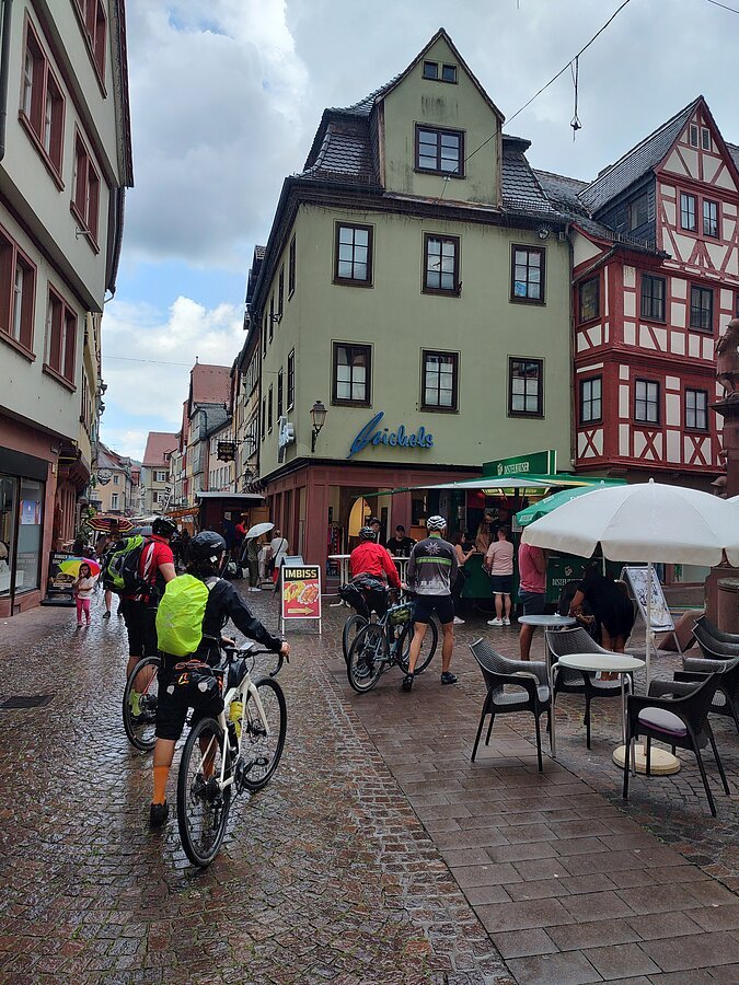Unsere Gravelbike-Tour begann in Eichstätt mit der Zugfahrt nach Rothenburg ob der Tauber. Von dort folgten wir der Tauber durch das idyllische Taubertal über Bad Mergentheim, Lauda-Königshofen und Tauberbischofsheim bis nach Wertheim – vorbei an historischen Ortskernen, ruhiger Natur und herrlichen Ausblicken. In Bad Mergentheim sorgte ein spontaner Stopp in einem etwas kuriosen asiatischen Lokal für eine besondere Anekdote: Der gekaufte Kuchen war nicht bei allen gleich gut angekommen – vor allem Gaggys Stück erwies sich als wenig bekömmlich. Das dort entdeckte Klavier entwickelte sich dafür zum Running Gag des Tages und begleitete uns gedanklich weiter.