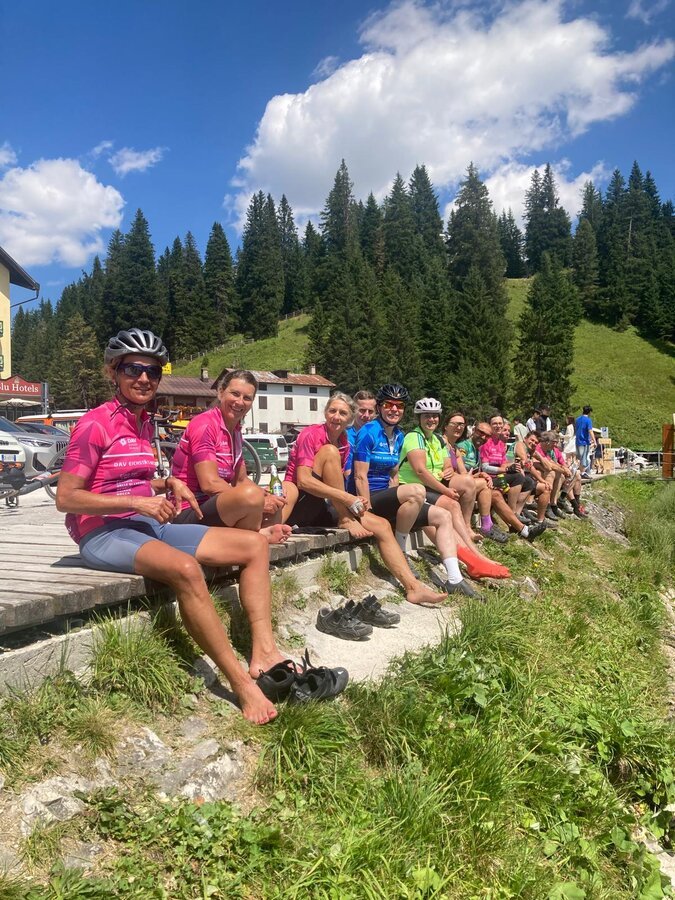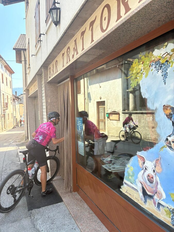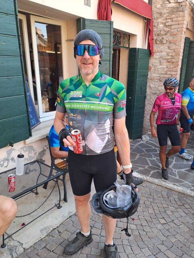 Heute verließen wir die Wunderwelt der Dolomiten und fuhren in die Bergwelt der Vizentiner Berge rund um Bassano del Grappa. Dort soll es angeblich eine Grappa-Quelle geben. Es läuft besser als gedacht. Trotz der vielen Höhenmeter kommen wir gut voran. Die Berge sind heute nicht so steil wie gestern. Bei einer durchschnittlichen Steigung von 5 % überwinden wir die finalen 900 Hm hinauf auf die Hochebene von Asiago quasi im Flug und fühlen uns schon fast wie die Radler beim Giro d’Italia, die heuer im Rahmen der 15. Etappe ebenfalls diesen Anstieg meistern mussten. Wir haben sogar noch so viel Zeit, dass wir den Pool der heutigen Unterkunft genießen können. Morgen geht es nach Bolca in unsere Partnerstadt.