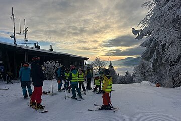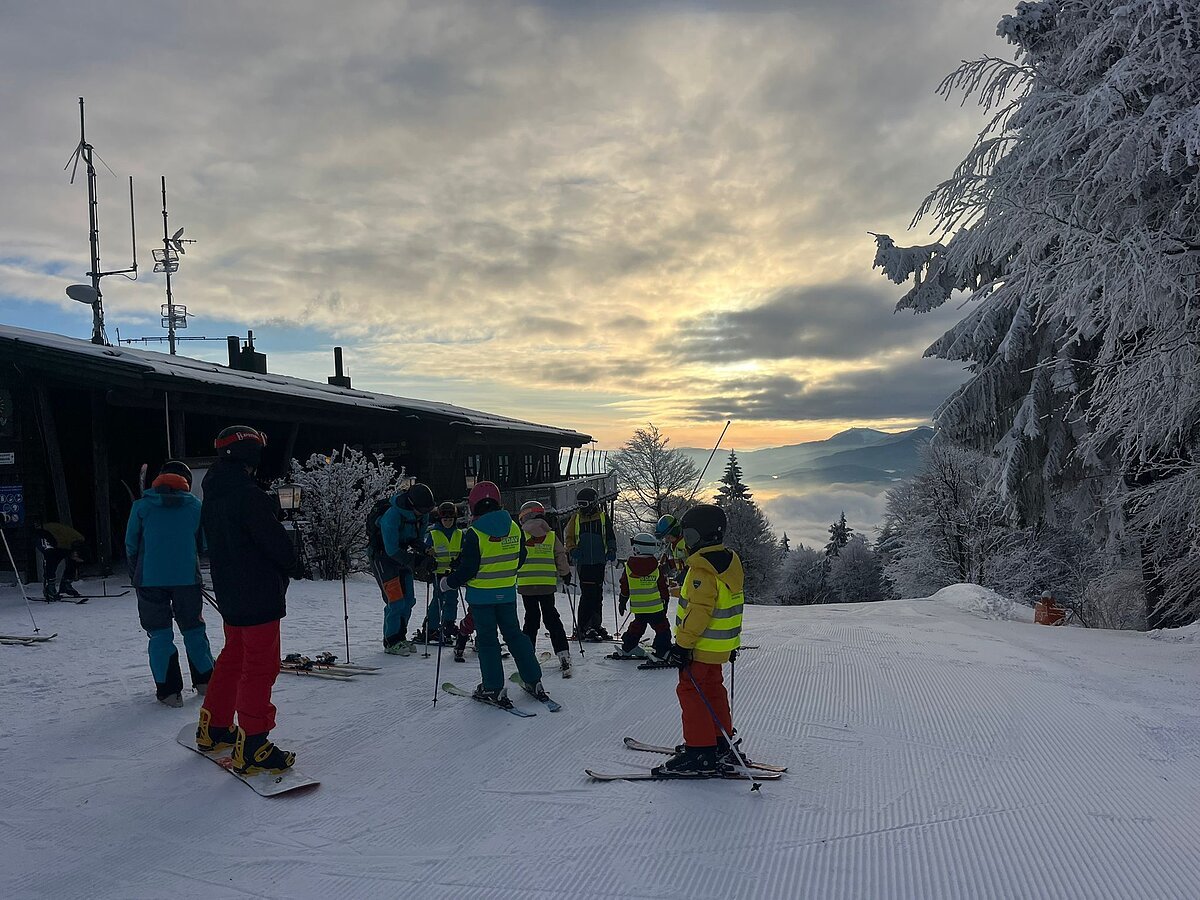 Nach einer überraschend ruhigen Nacht im Bettenlager – vielleicht hatte das Nachtskifahren seinen Anteil daran – wurden die aufgeregten Kinder am Samstag in Gruppen eingeteilt. Je nach Können starteten sie gemeinsam mit ihren Skilehrern in den Skitag. Die Anfänger blieben zunächst im Tal, übten das Fahren auf den Kanten und lernten, dem Schlepplift zu trotzen. Die Fortgeschrittenen machten sich dagegen schnell auf die Suche nach den besten Schanzen und den schönsten Schwüngen. In der perfekt glitzernden Winterlandschaft kamen sie dabei voll auf ihre Kosten, und wie jedes Jahr stellten sie sich die Frage: Wer traut sich die schwarze, hügelige Liftspur hinunter?