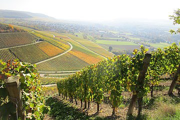 Da es Anfang Oktober aus Kübeln gegossen hatte, mussten wir dieses Mal unsere herbstliche Weinbergtour um zwei Wochen - auf den 15. Oktober - verschieben. Für diesen Tag war perfektes Wetter angekündigt. Zuerst sind wir jedoch im Nebel über die berühmten Weinberge am Steinberg nach Veitshöchheim geradelt. Bald mussten wir feststellen, dass die Zeit Mitte Oktober für eine Tour durch die Weinberge für den Blutzuckerwert nicht gerade von Vorteil ist: Ein paar Tage zuvor wurden die letzten Weintrauben abgeerntet und so haben wir uns zuerst bei schnell aufklarendem, schönstem Herbstwetter nur mit klarem Wasser durch die Rebstöcke gequält. Überraschenderweise fanden wir dann doch noch neben den Sonnenstrahlen vereinzelt saftige Trauben in Eisweinqualität an den Rebstöcken hervorblitzen, welche wir mit Genuss verspeisen konnten.